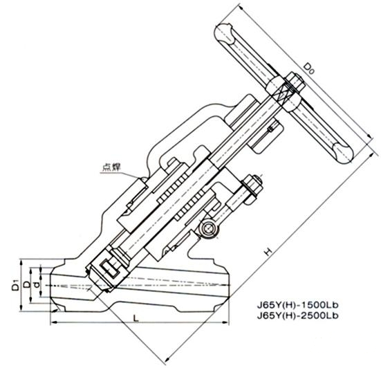J565Y直流式對焊截止閥尺寸和重量: