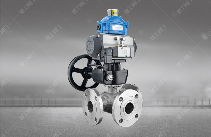 氣動三通球閥可分為L形氣動三通球閥和T形氣動三通球閥,L形(Q44F)三通球閥用于介質流向的切換,能使相互垂直的兩個通道連接;T形(Q45F)三通球閥用于介質分流、合流及流向切換。T形三通可以使三個通道相互連通或使其中的兩個通道連通。三通球閥一般采用兩閥座結構,亦可根據用戶要求采用四閥座結構。